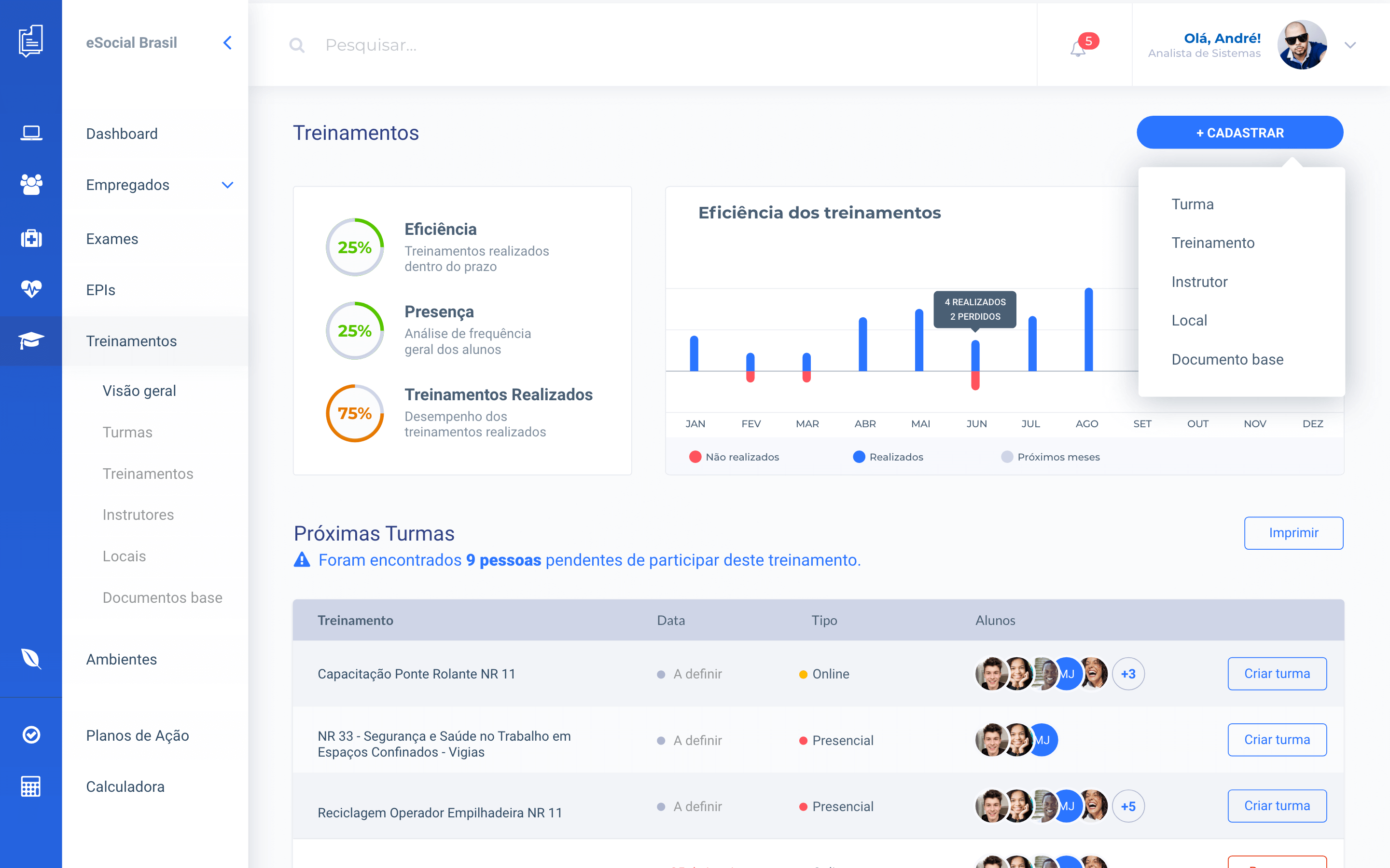 Queremos que você fique por dentro de tudo que acontece em sua empresa, como aquele exame que venceu e você nem imaginava. Com o sistema, isso não será mais problema, pois ele já sugere o que deverá ser feito.